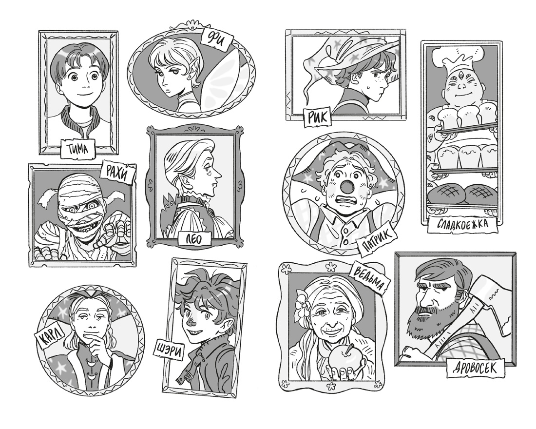 - Чёрно-белые иллюстрации, цветные иллюстрации на форзаце и нахзаце (карта города и полки в ведьминской лавке), эффектная обложка от современной художницы Demara.