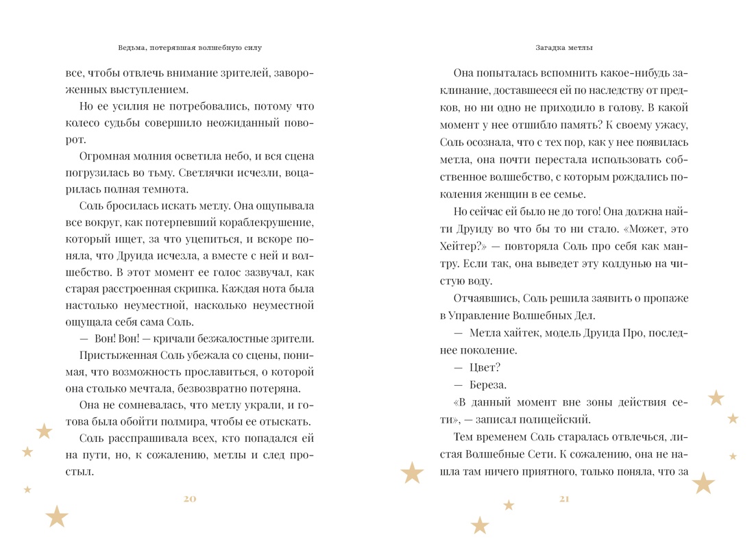 Ведьма по имени Соль больше всего на свете любила петь и мечтала попасть на музыкальный конкурс «Волшебные голоса». Однажды она получила заветное приглашение и отправилась на конкурс со своей любимой волшебной метлой Друидой, стирающей все тревожные мысли. Но кто-то похитил Друиду, и теперь Соль уверена — она ужасна и без метлы ничего не сможет добиться. Соль отправляется на поиски Друиды, но в этом удивительном путешествии ей предстоит найти гораздо более важные вещи и узнать, что подлинная магия не зависит от мнения других людей.