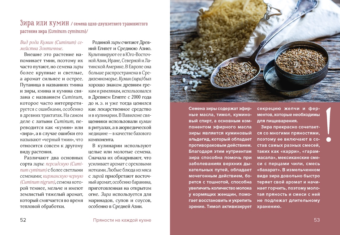 - Полезная информация об использовании пряностей, удобная таблица для приготовления блюд и глоссарий.