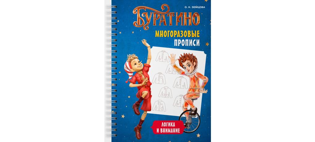 Многоразовая тетрадь от популярного автора развивающих книг О. Н. Земцовой — хит для вашего ребёнка! Яркая обложка и красочные иллюстрации с любимыми героями фильма про Буратино привлекут внимание малыша. Это отличная альтернатива бесконечным покупкам прописей и тетрадей! Многоразовая поверхность позволяет практиковаться, совершенствуя навыки письма и рисования. Ошибки легко исправить — просто сотрите влажной салфеткой и начните снова! Тетрадь разработана с учётом возрастных особенностей и включает разнообразные задания, направленные на: